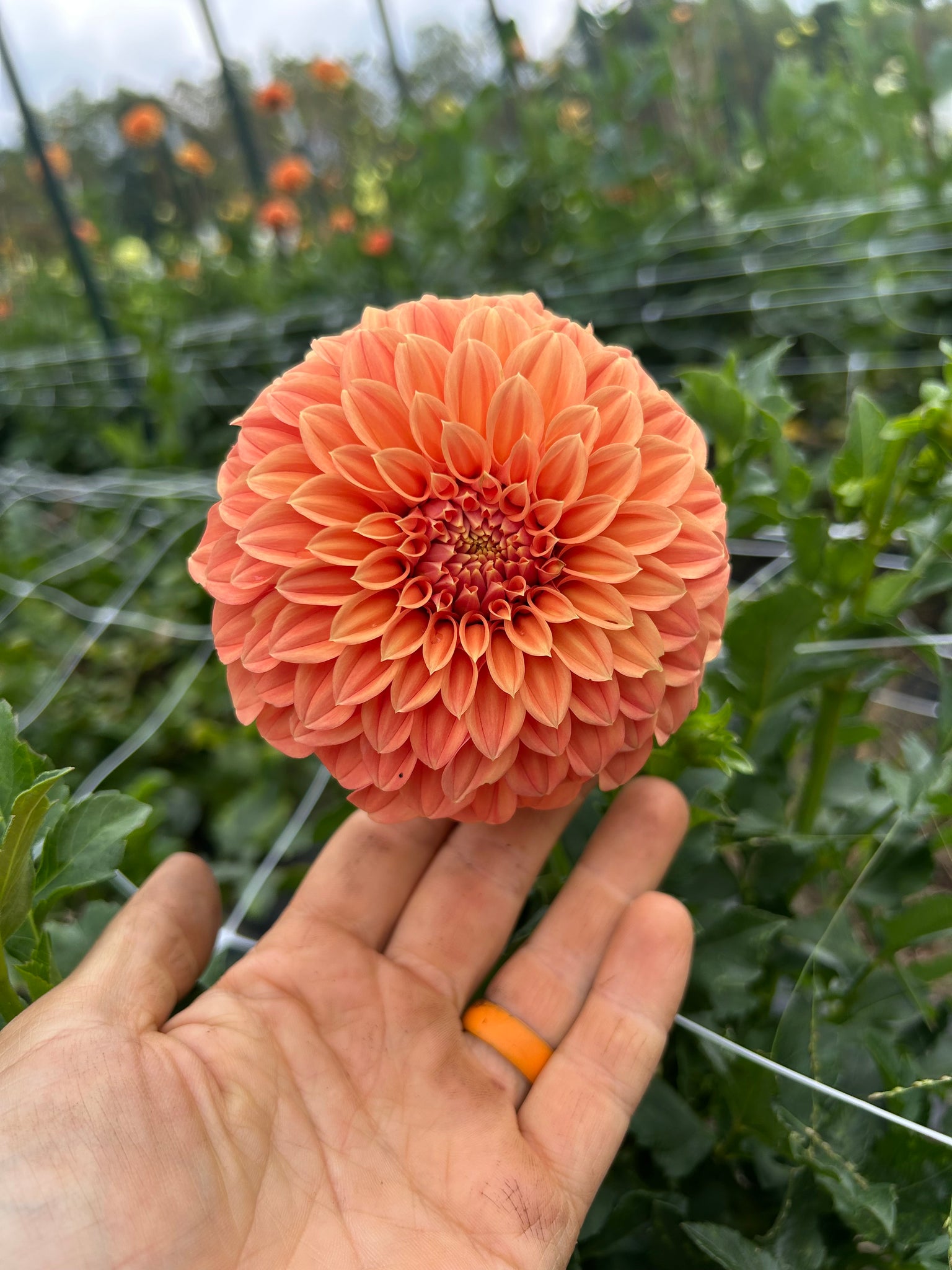 Bracken Palomino is a beautiful orange, sometimes peachy dahlia with a lot of depth in its blooms. A real stunner!